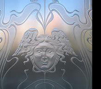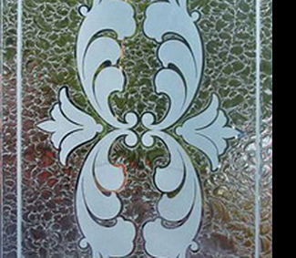Эффектно выглядит сочетание пескоструйного рисунка и морозного узора, как на фото слева. Хоть эта работа требует много времени и усилий, но это себя оправдывает, ведь в результате получается уникальное изделие, которое невозможно повторить никаким другим способом.