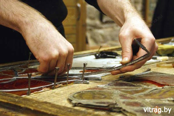 Процесс реставрации даже незначительных деталей требует особой внимательности, аккуратности и точности. Именно поэтому создание нового шедевра порой кажется куда проще. Но такой вариант неуместен, когда дело касается витража большой художественной и культурной ценности. При работе с такими проектами надо также учитывать то, что локальная работа возможна при наличии незначительных дефектов. Однако, если дело касается работы крупного масштаба – нескольких квадратных метров, то придется витраж демонтировать и доставить в мастерскую, где руки творца будут кропотливо восстанавливать утраченную красоту.