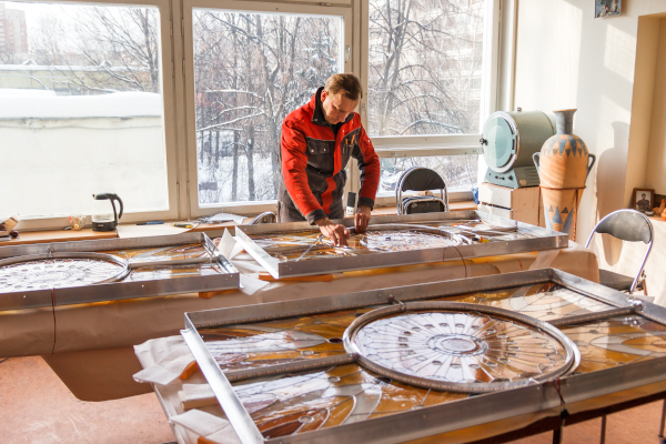 Часто можно услышать мнение о том, что витражисты это художники, которые плохо разбираются в нюансах монтажа. На самом деле не так – опытные витражисты часто хорошие практики, и обязательно помогут и в монтаже.