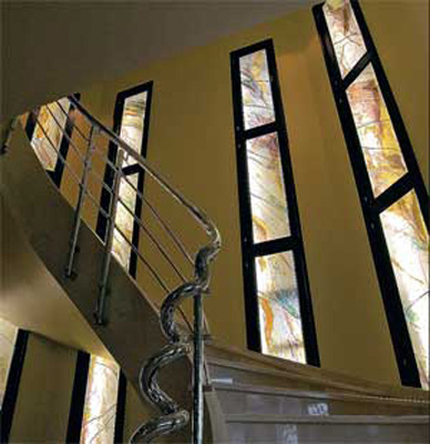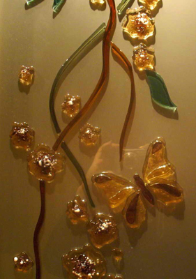 Витражи изготовленные в технике «фьюзинг» имеют ряд преимуществ. Рисунок можно сделать объемным рельефным, многосложным с широкой цветовой гаммой. Очень эффектно смотрятся элементы из фьюзинга на зеркалах. Небольшая бабочка или рыбка в уголке зеркала придадут ему неповторимый облик.![]()