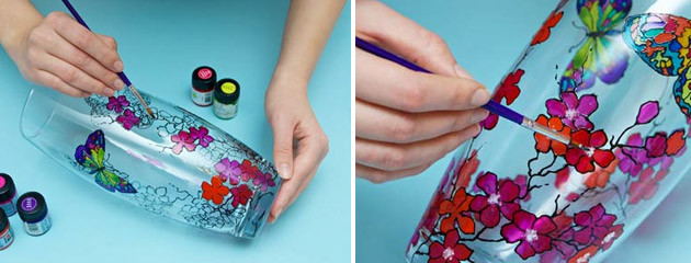 Одним из видов современного витража называют в том числе ручную роспись поверхности стекла. Сам процесс подразумевает выбор специальной краски, благодаря чему по своему цвету и многообразии палитры готовое изделие радует нас долгое время. Разрабатывают витражную краску уделяя особенное внимание такому показателю как стойкость. Также подобная краска должна хорошо пропускать цвет и вполне справляться с воздействием влаги.