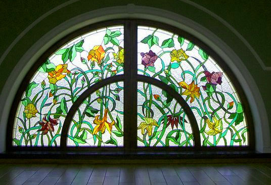 Окна – это наиболее удобный вариант для витражей, хотя другие решения бывают не хуже. Рисунок или узор могут быть различными – от пожелания клиента. Кстати, клиент может быть сам дизайнером своего витража – достаточно просто сделать эскиз, также может выбрать размер, форму и сам механизм открывания – поворотный или же поворотно-откидной. Стоит отметить также вариант со стеклопакетами: рисунок на стекле вставляется уже готовым в стеклопакет, который, в свою очередь, не будет терять своих физических и технических качеств – звукоизоляция и уровень проводимости тепла будут сохранены.