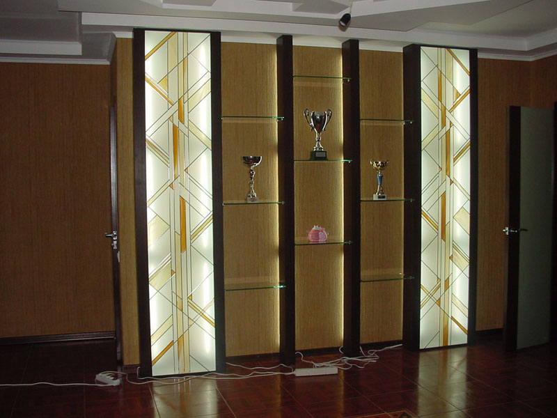 Способность стекла рассеивать свет, а не поглощать его, позволит создать в интерьере с помощью витража необычные световые решения. Это могут быть ОКОННЫЕ или ВИТРИННЫЕ стекла, ПОДВЕСНЫЕ ПОТОЛКИ, КАМИННЫЕ или ОФИСНЫЕ ШИРМЫ и ЭКРАНЫ, стеклянные потолочные ЛЮСТРЫ и ПЛАФОНЫ, настенные и напольные СВЕТИЛЬНИКИ. Также можно оформить конструкции с применением больших стеклянных поверхностей: ПАВИЛЬОНЫ, ЗИМНИЕ САДЫ. Витражами украшают МЕЖЛЕСТНИЧНЫЕ ПРОЛЁТЫ, ЗЕРКАЛА, СТОЛЕШНИЦЫ. В витражных техниках создают ЧАСЫ, ДЕКОРАТИВНЫЕ СКУЛЬПТУРЫ, КОМПОЗИЦИИ, ВАЗЫ и другие предметы интерьера. Новые технологии производства позволяют создать стеклянные полы с нанесением декоративного рисунка и использованием ударопрочного, закалённого стекла.