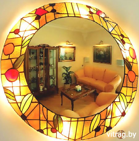 Наносить на зеркало рисунок можно многими способами. С витражными техниками можно создавать красочные зеркала, которые сразу будут также привлекать внимание к себе. Если в интерьере уже также используется какой-то рисунок, то его также вполне можно повторить и на рисунке витража. Выбор декора для каждого зеркала может соответствовать предназначению комнаты, своеобразно дополнять ее. В офисе фирмы там может оказаться логотип компании, в детской – яркие рисунки и животные, в ванной – обитатели моря, к любому интерьеру также подойдут растительные мотивы.