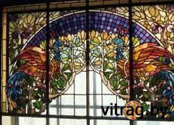 Второй способ. Из цветных стекол вырезают элементы рисунка. Готовят трафарет из металла, который может повтрорить контур рисунка. Затем там закрепляются элементы витража.